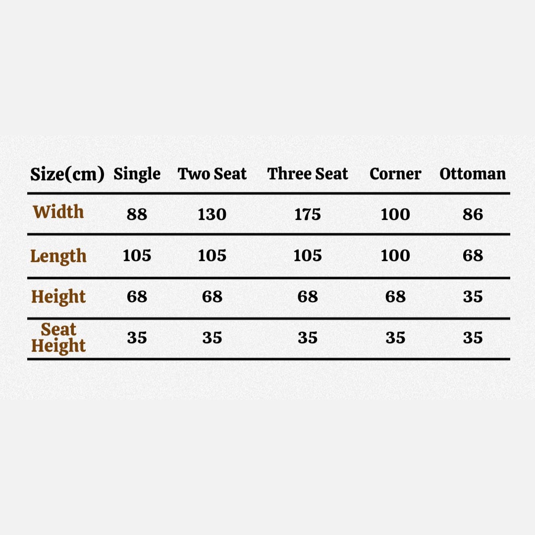 | Seat Size | Single, Two Seater, Three Seater, Corner Seat |